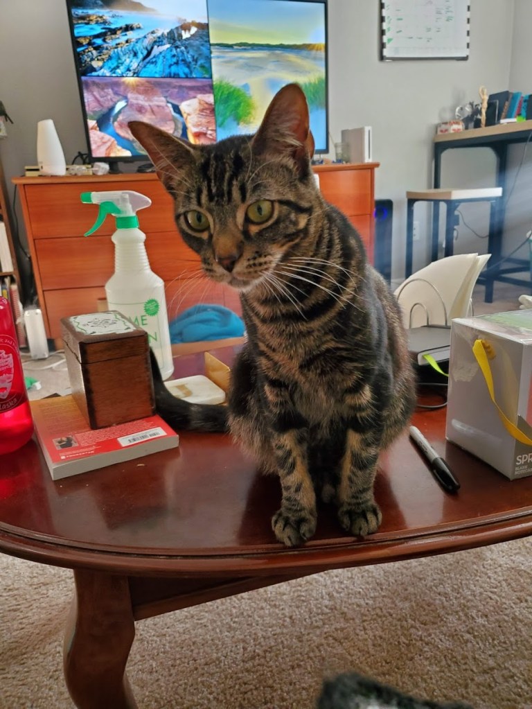 Now imagine you’re me and it’s two am. You haven’t been sleeping well, neither cat came to bed which is really weird and you keep hearing weird rustling noises from the window. Then you realize it’s meowing too. You recognize the meowing as your baby kitten and figure he got himself stuck between the window and the dresser. You don’t want to wake up your husband so you keep the light off and just reach around for soft things. You grab something super soft thinking it is the kitten but as you pull it and a hat falls on you, you realize it is just your fleece robe. As you search you get more tired and confused so you walk to the kitchen and eat some pickles. Yes, tiny sweet pickles, because it’s two am so you shouldn’t eat cookies but peeling an orange is too much effort.