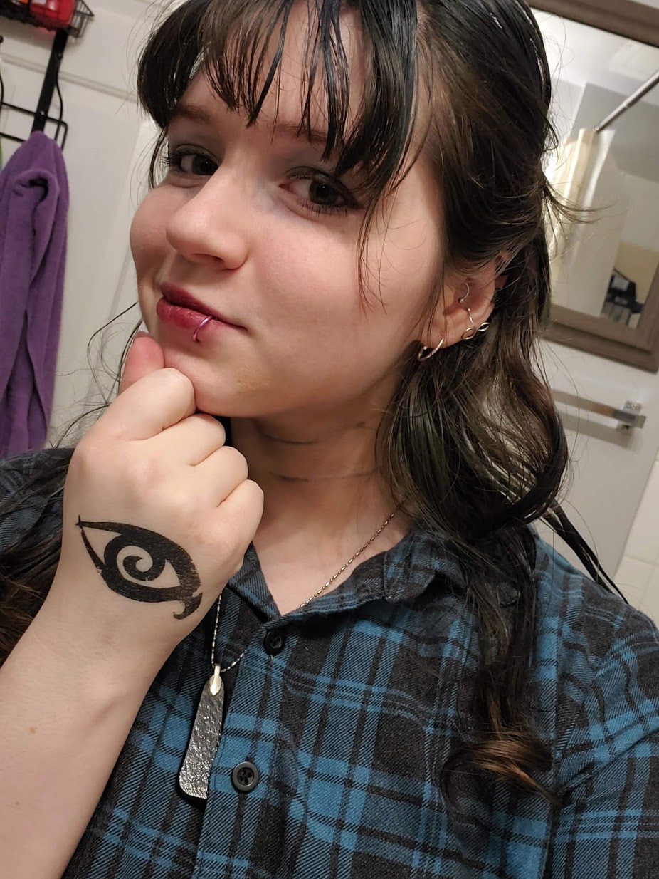 So I dyed my hair blue…sort-of. I’m pretty dark-haired naturally so the blue didn’t really stand out but hey, I tried. I was trying to look “cool” and “authoritative” but I came off looking more like an emo middle schooler. However, I am both the same height and age as Reagan so it might be accurate…(feel free to just scroll past the photos to the review) (also for my mom’s sake all the piercing and tattoos are fake just temporary tattoos or drawn on with eyeliner and eyeshadow I promise)