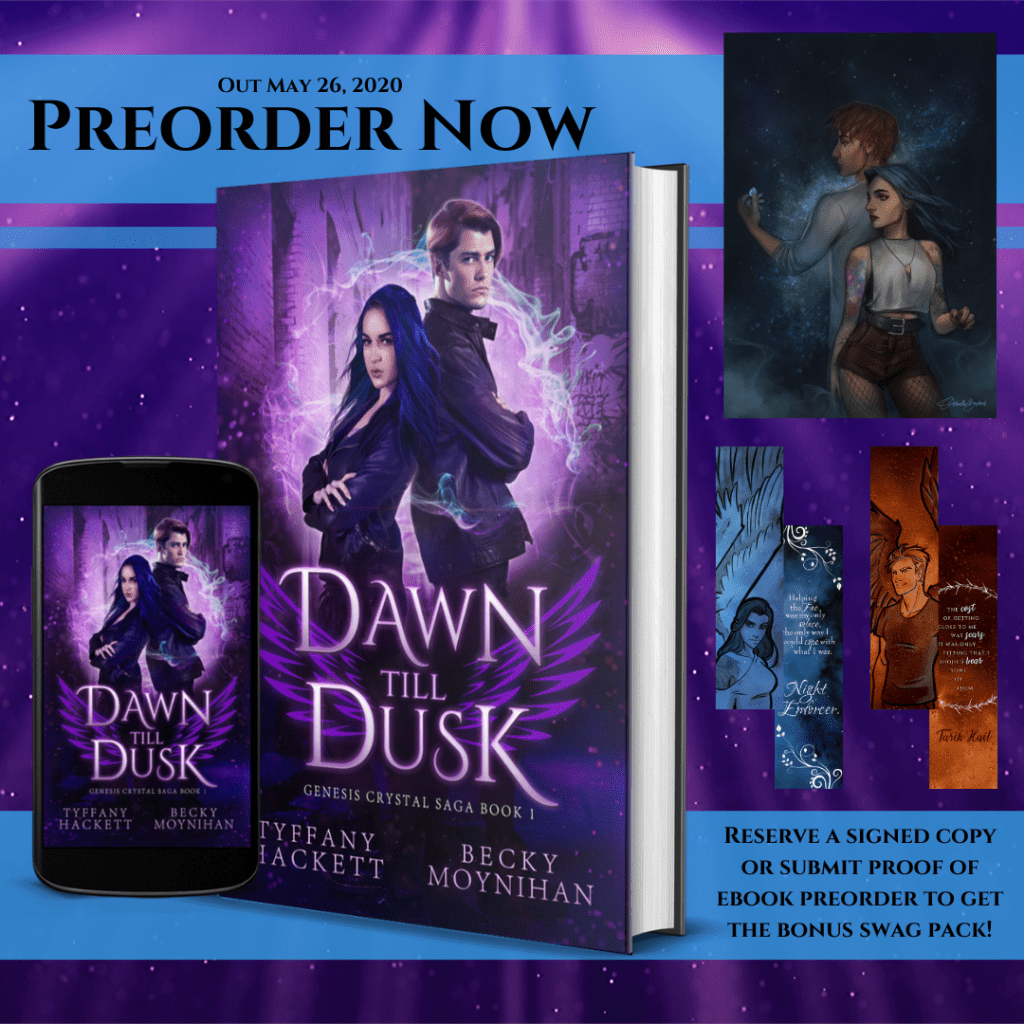 Dawn Till Dusk is book one of the Genesis Crystal Saga by Tyffany Hackett and Becky Moynihan. You may recognize Tyffany’s name from the reviews I did of her books Imber and Tellus; if you like those don’t be afraid to bring in high expectations of Dawn Till Dusk because she will meet them. This is the first book I’ve read from Becky Moynihan but she was also very impressive and she’s been super sweet every time I’ve talked with her. She has written the Elite Trials trilogy.