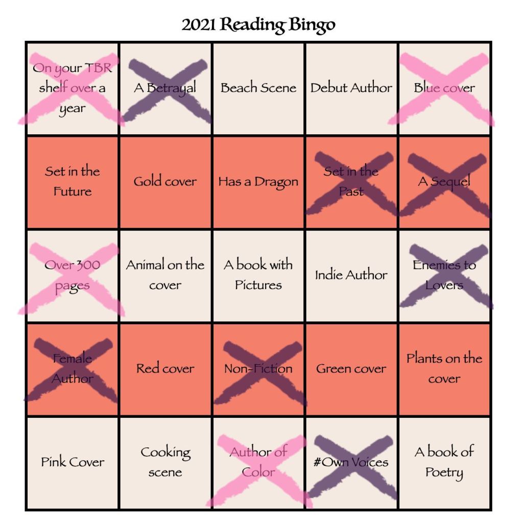 Two Months in and I’m at 13 books out of my goal of 50! I read 4 audiobooks and 1 eBook in February. Here’s how my own bingo board is coming along! I can’t wait to see yours.