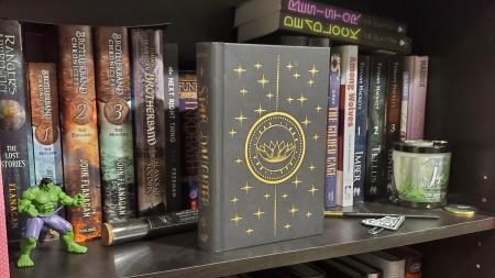 Currently obsessed with Fae stories and when the popular TikTok author Analeigh Ford published A Veil of Truth and Trickery. I love this book on so many levels but the best physical feature is the cover. The cover is laminate so the picture is laminated onto the hardcover with no pesky dust jacket to keep track of.