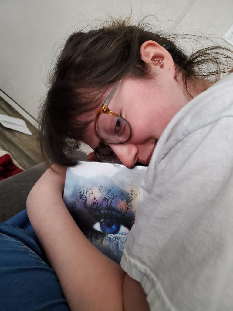 My December book box arrived with a copy of Dreams Lie Beneath by Rebecca Ross. The blanket that came in the box was so soft. We got a new couch in my husband’s office so I can read near him and Tilly has